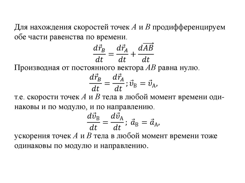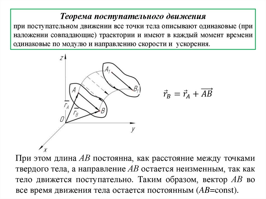Теорема поступательного движенияпри поступательном движении все точки тела описывают одинаковые (при
