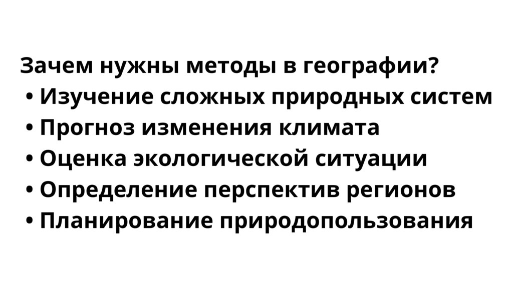 Зачем нужны методы в географии?• Изучение сложных природных систем