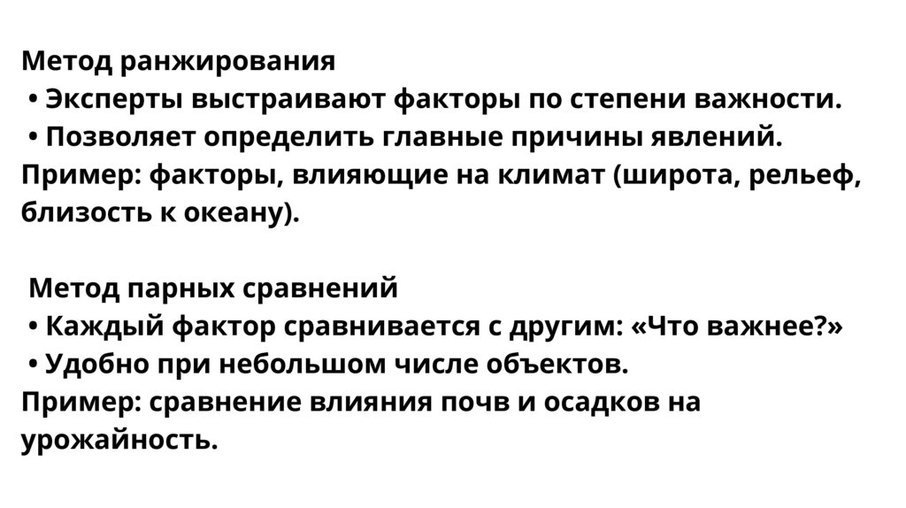 Метод ранжирования• Эксперты выстраивают факторы по степени важности.