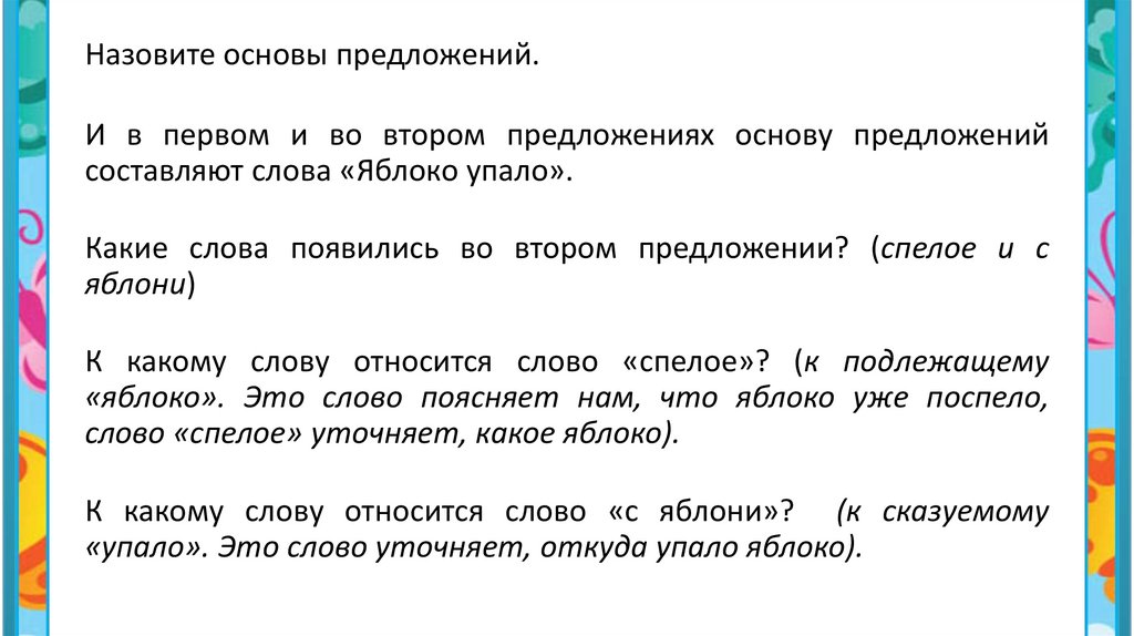 «яблоко». Это слово поясняет нам, что яблоко уже поспело,