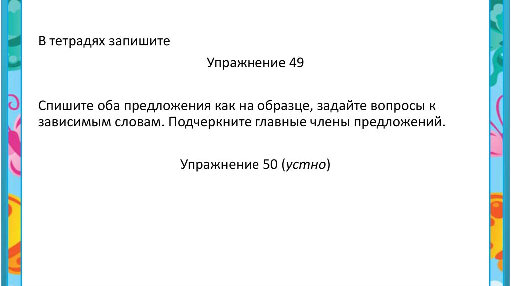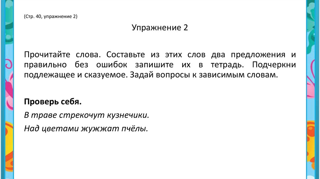 подлежащее и сказуемое. Задай вопросы к зависимым словам.