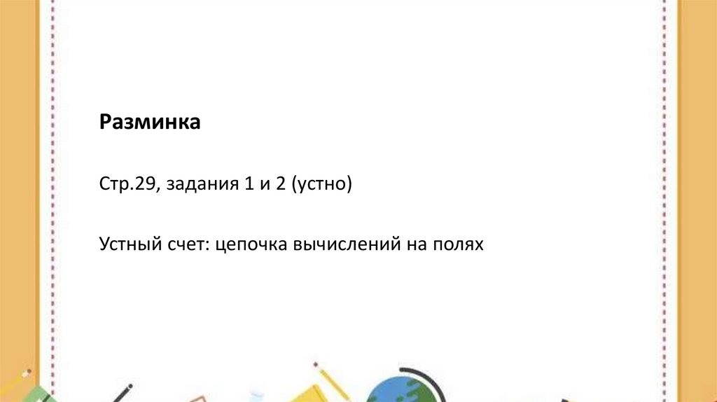 РазминкаСтр.29, задания 1 и 2 (устно)