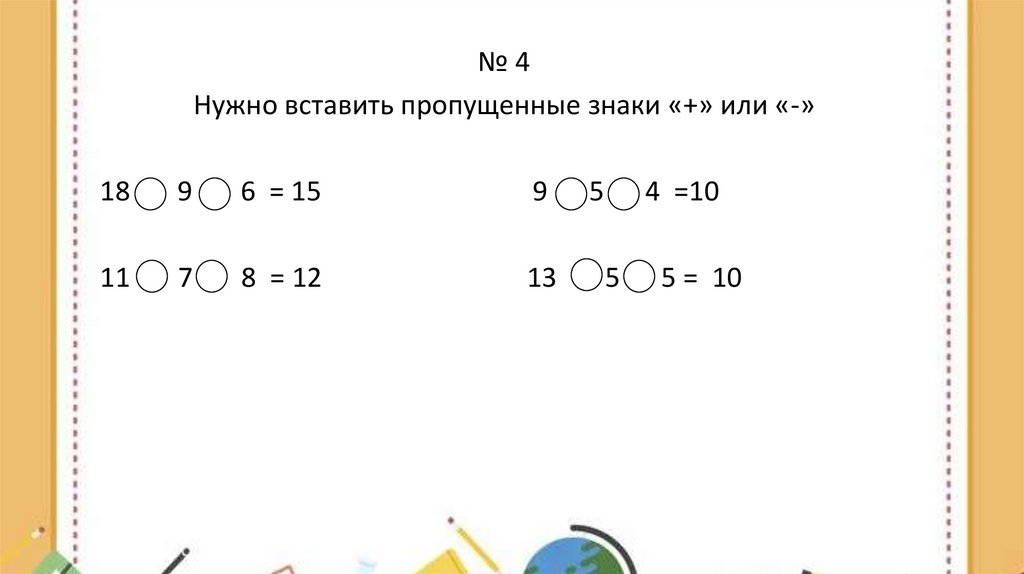 №4Нужно вставить пропущенные знаки «+» или «-»