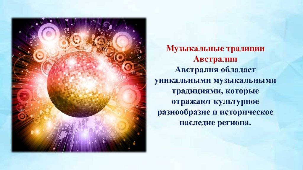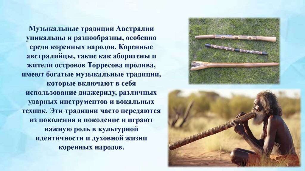 Музыкальные традиции Австралииуникальны и разнообразны, особенно
