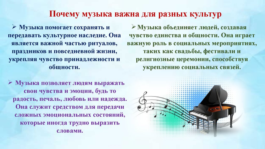 Почему музыка важна для разных культурМузыка помогает сохранять и