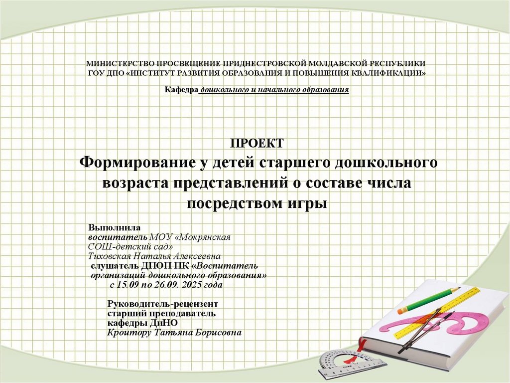 МИНИСТЕРСТВО ПРОСВЕЩЕНИЕ ПРИДНЕСТРОВСКОЙ МОЛДАВСКОЙ РЕСПУБЛИКИГОУ ДПО «ИНСТИТУТ РАЗВИТИЯ ОБРАЗОВАНИЯ И ПОВЫШЕНИЯ КВАЛИФИКАЦИИ»