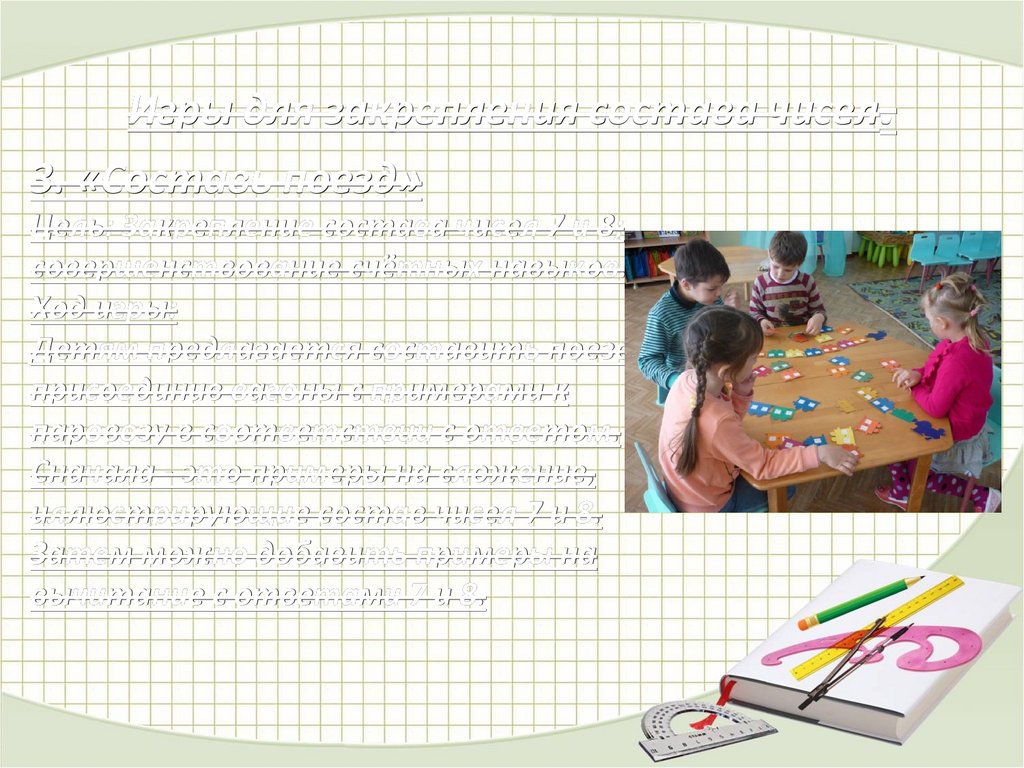 Игры для закрепления состава чисел.3. «Составь поезд»