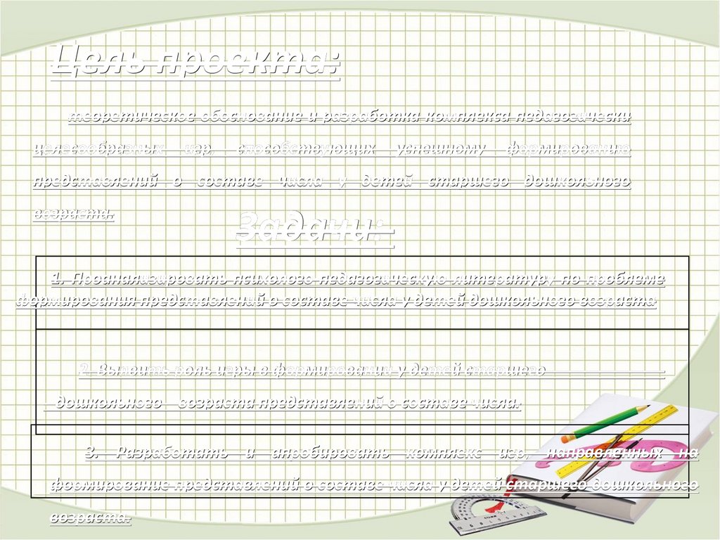 Цель проекта:теоретическое обоснование и разработка комплекса педагогически