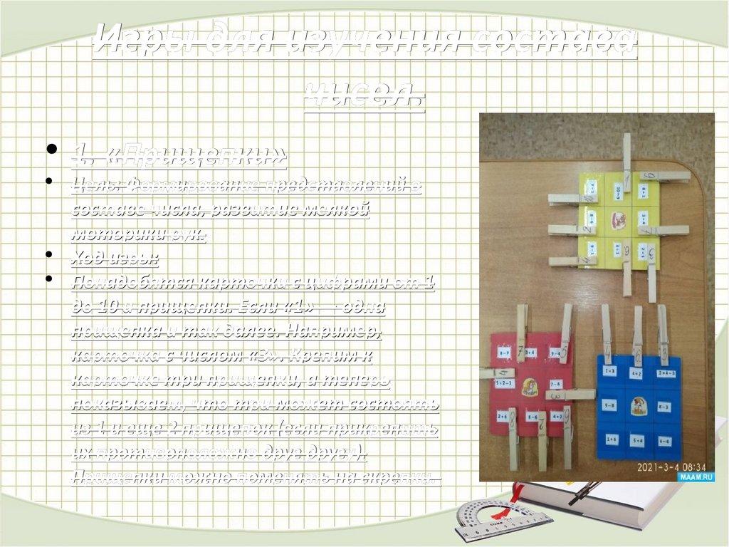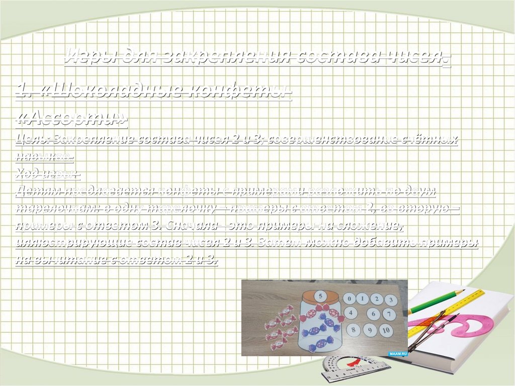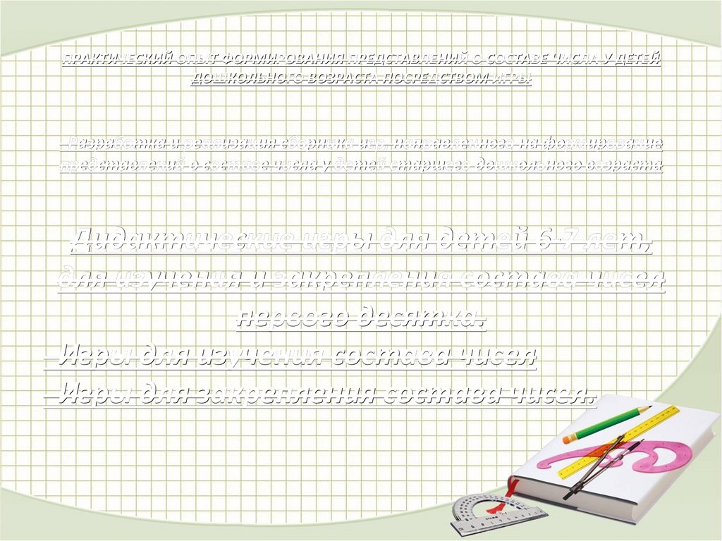 ПРАКТИЧЕСКИЙ ОПЫТ ФОРМИРОВАНИЯ ПРЕДСТАВЛЕНИЙ О СОСТАВЕ ЧИСЛА У ДЕТЕЙДОШКОЛЬНОГО ВОЗРАСТА ПОСРЕДСТВОМ ИГРЫ