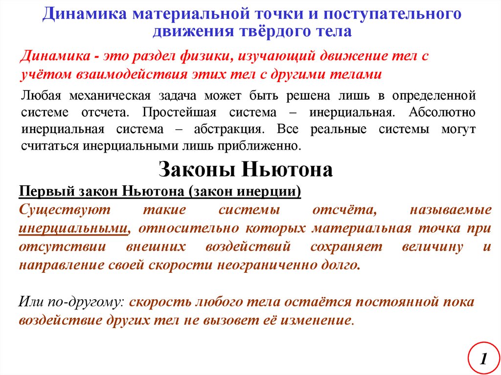 1. Динамика материальной точки и поступательного движения твёрдого тела