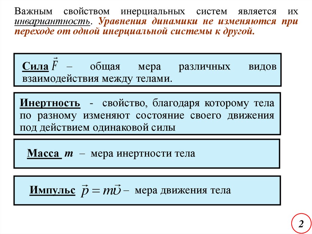 Важным свойством инерциальных систем является ихинвариантность. Уравнения динамики не изменяются при