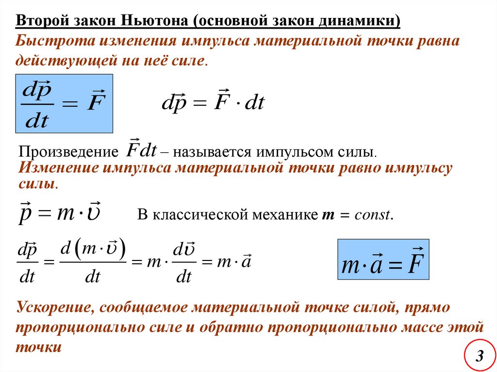 Второй закон Ньютона (основной закон динамики)Быстрота изменения импульса материальной точки равна