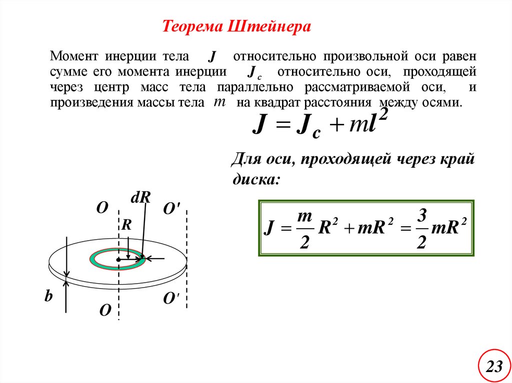 Теорема ШтейнераМомент инерции тела J относительно произвольной оси равен