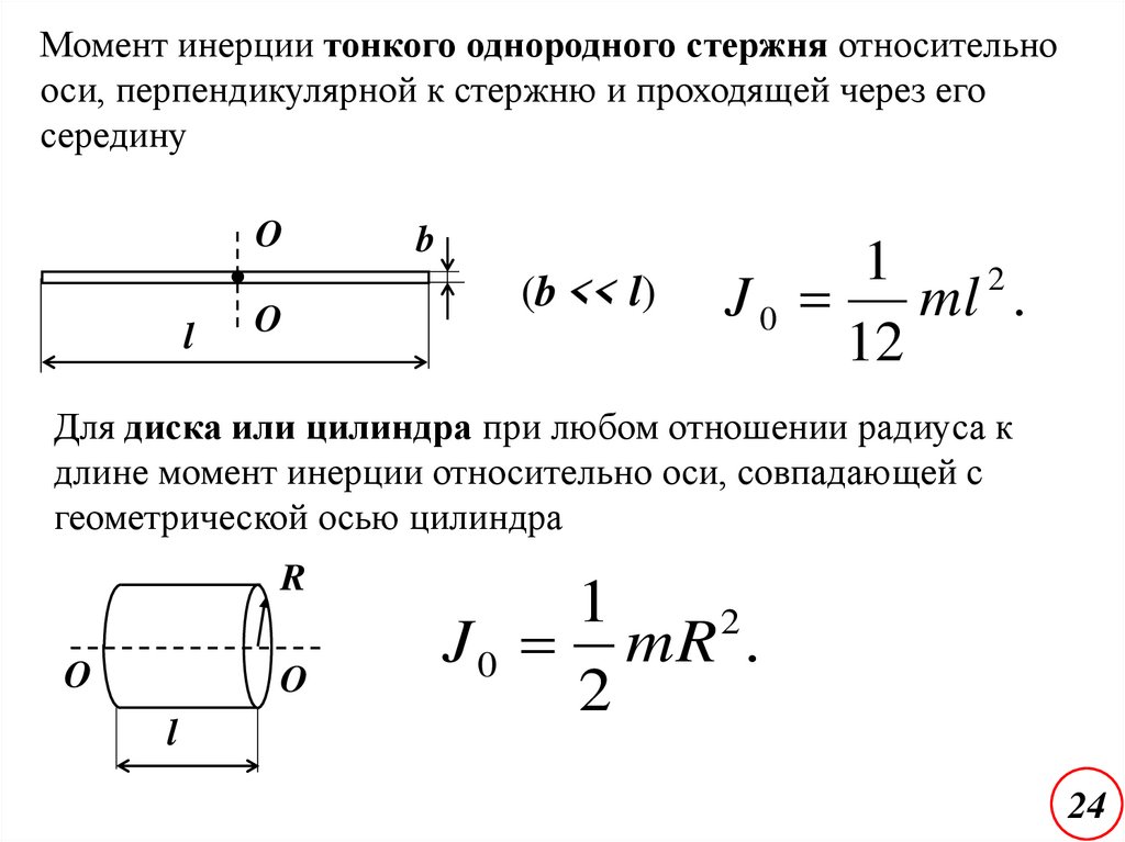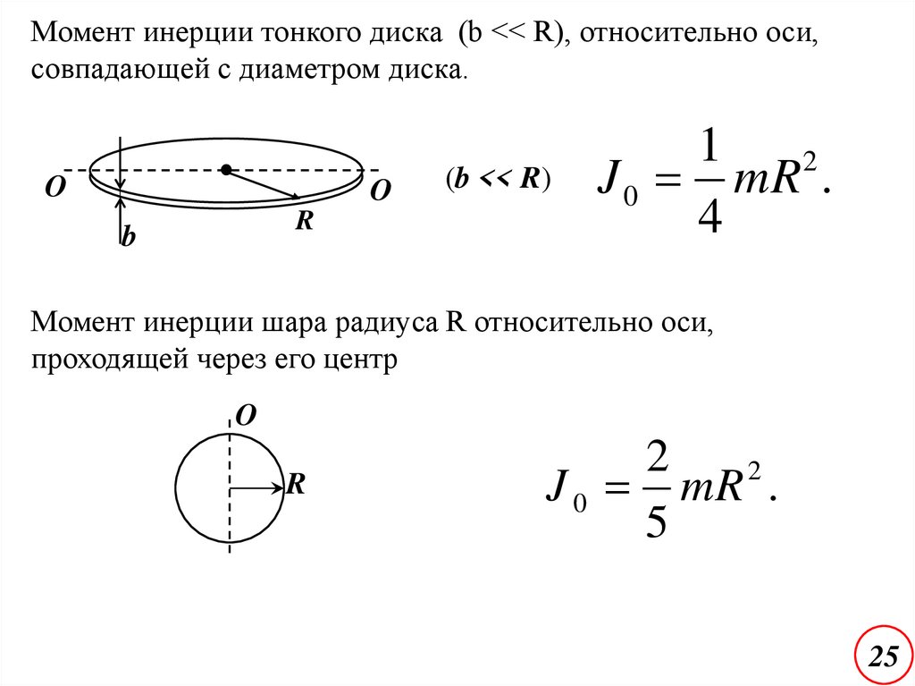 Момент инерции тонкого диска (b << R), относительно оси,совпадающей с диаметром диска.