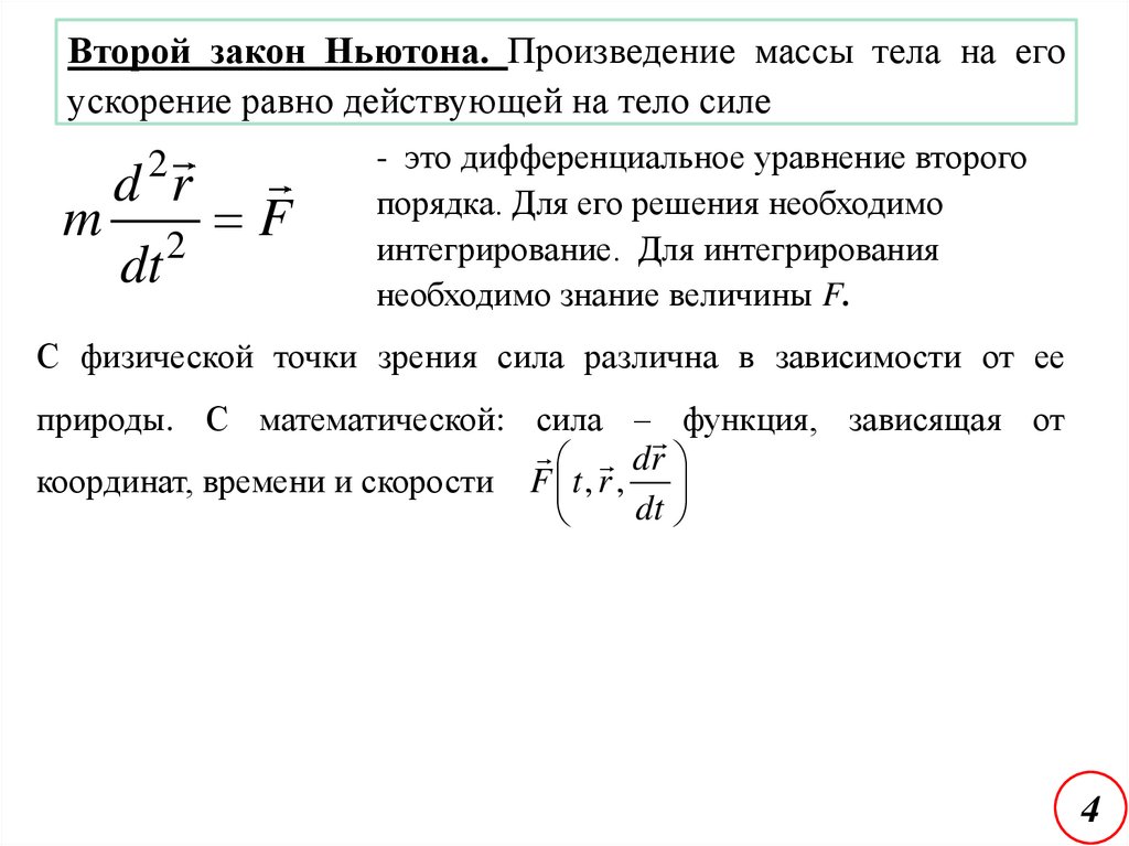 Второй закон Ньютона. Произведение массы тела на егоускорение равно действующей на тело силе