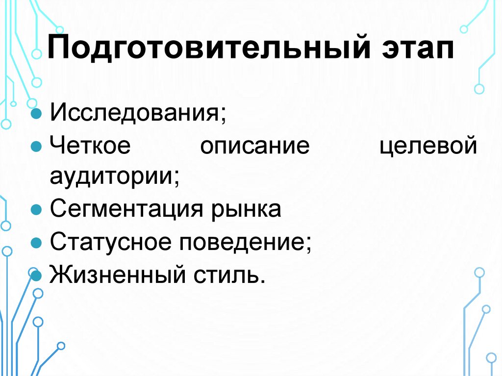 Подготовительный этап● Исследования;