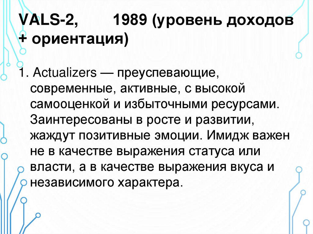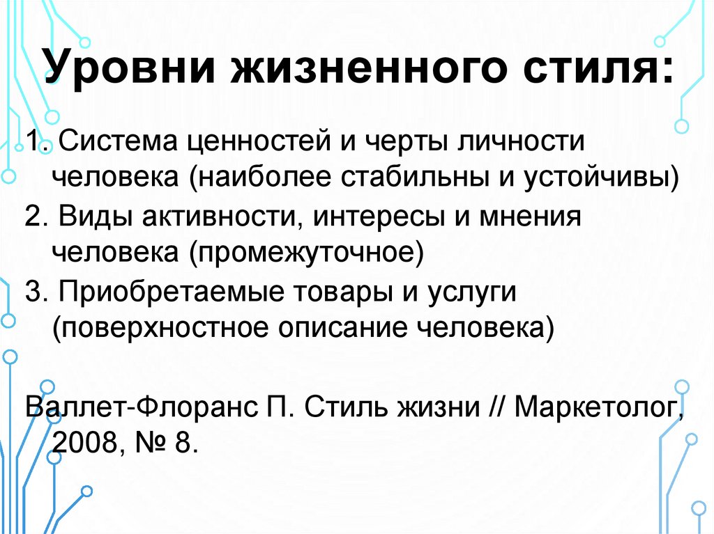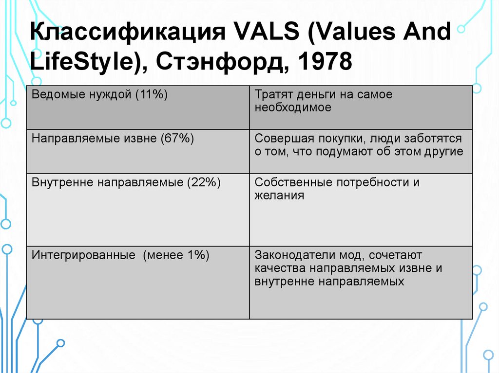 потребителей по стилю жизни // Маркетинг и