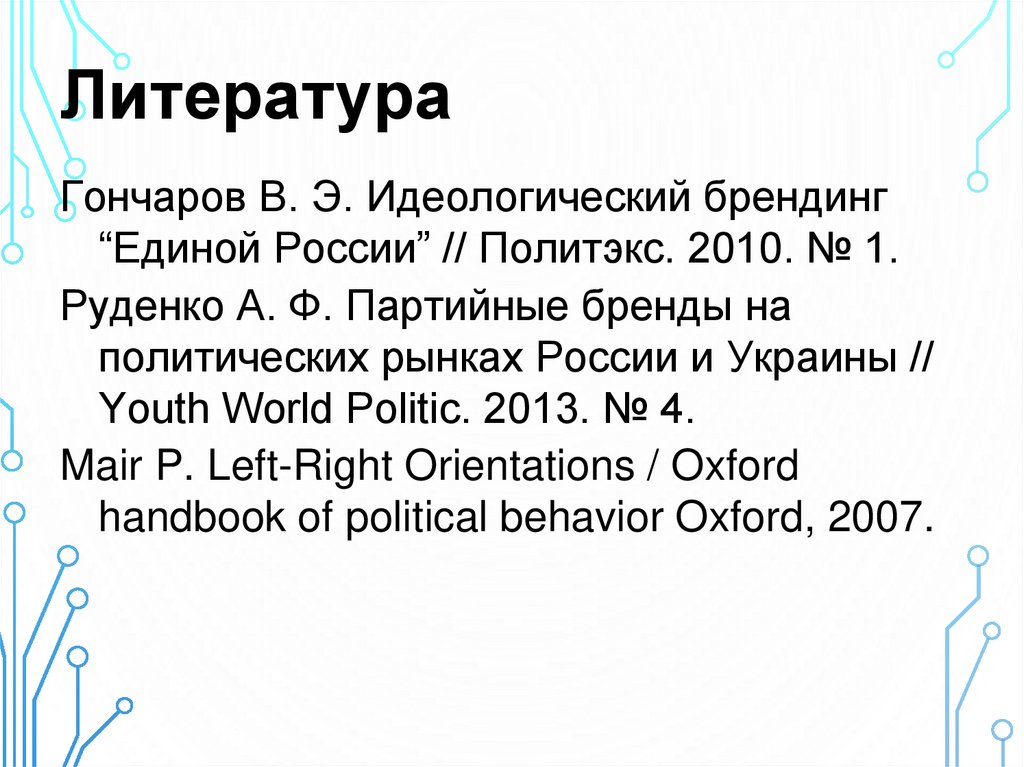 ЛитератураГончаров В. Э. Идеологический брендинг