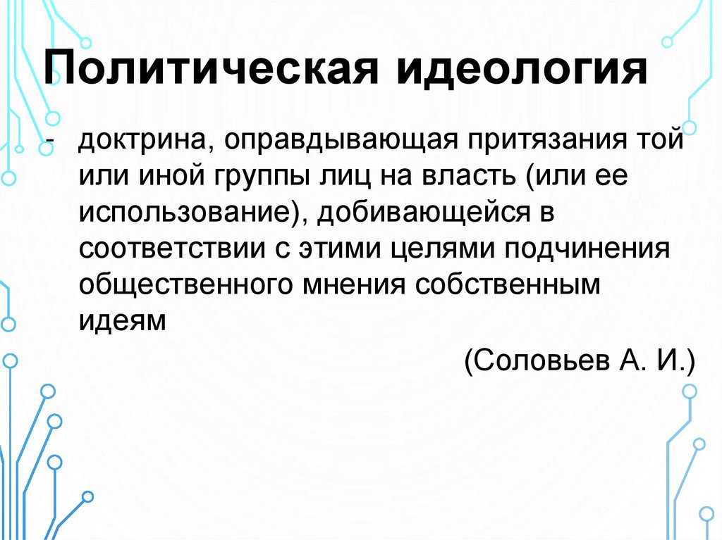 Политическая идеология- доктрина, оправдывающая притязания той