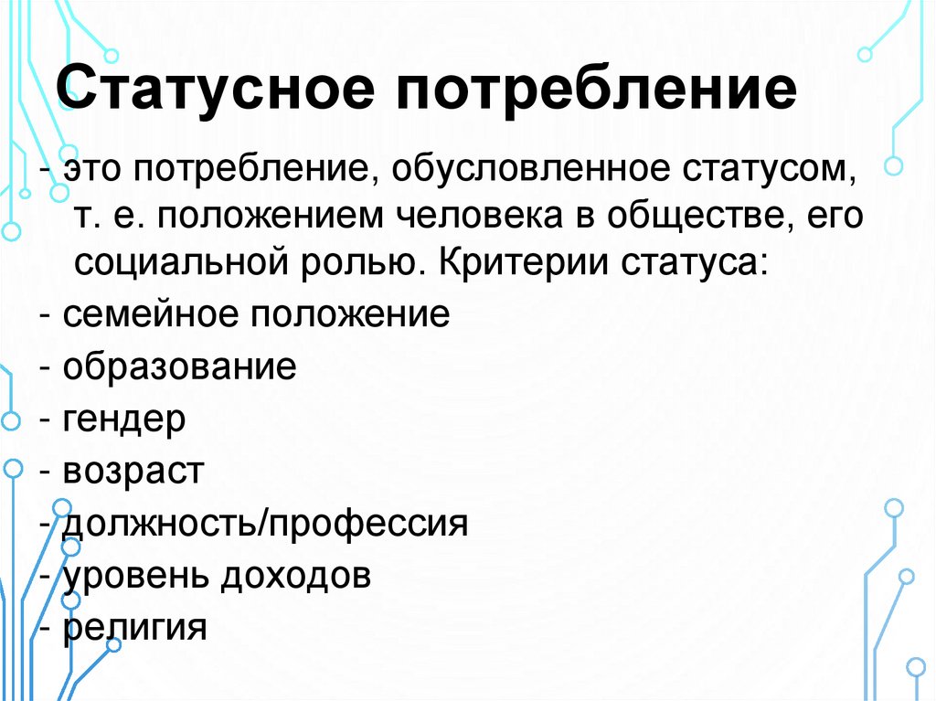 Статусное потребление- это потребление, обусловленное статусом,