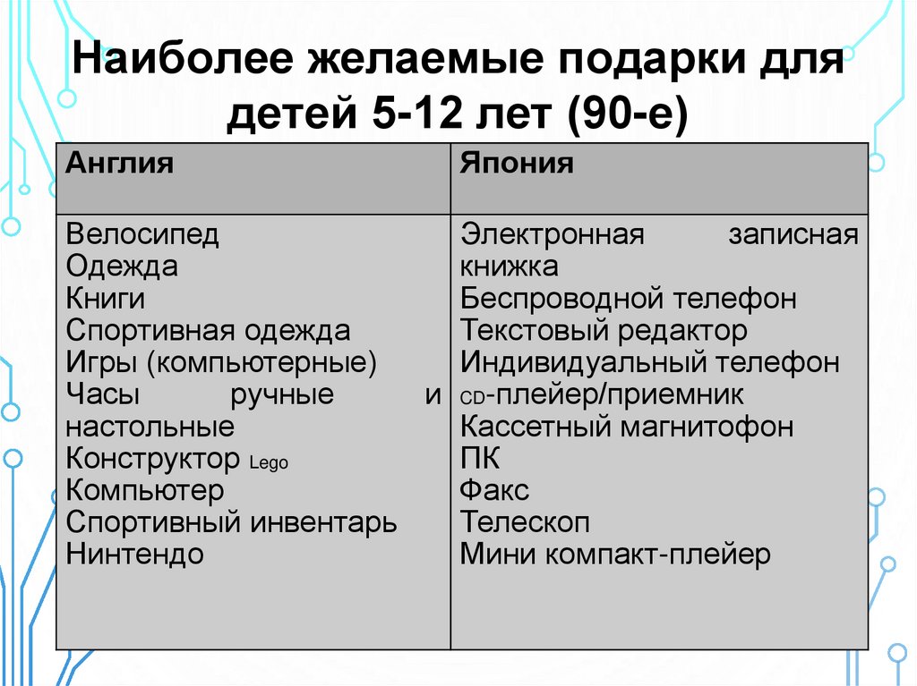 Наиболее желаемые подарки длядетей 5-12 лет (90-е)