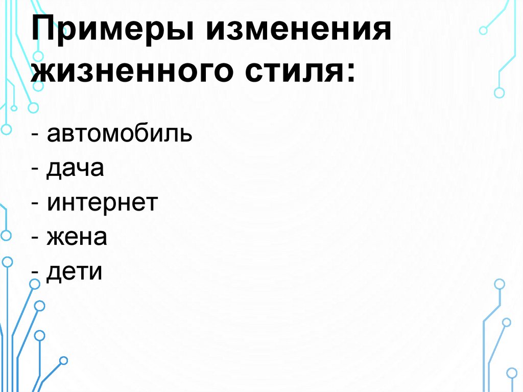 Примеры измененияжизненного стиля: