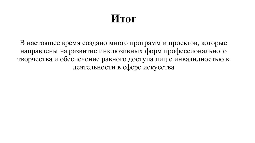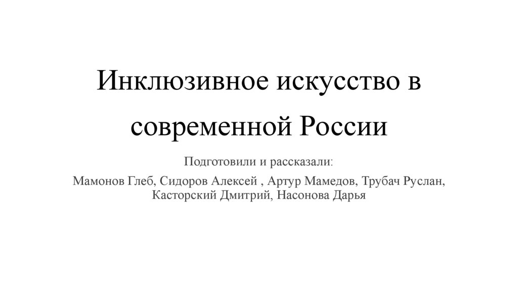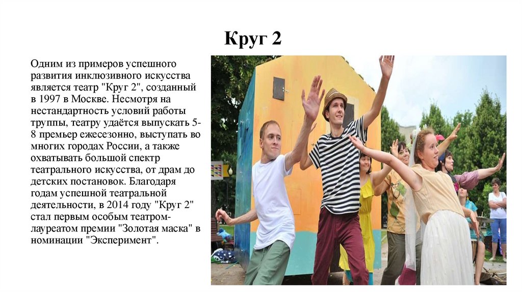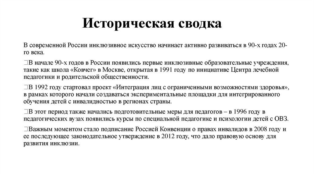 Историческая сводкаВ современной России инклюзивное искусство начинает активно развиваться в 90-х годах 20го века.