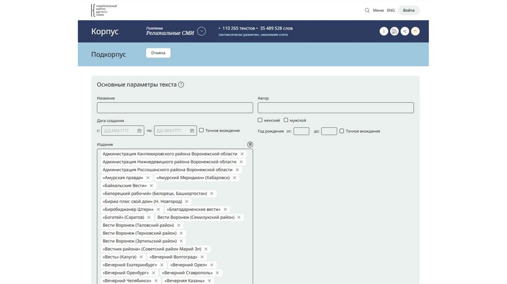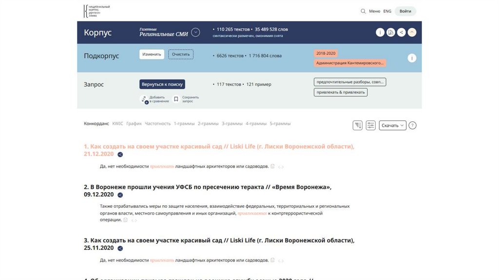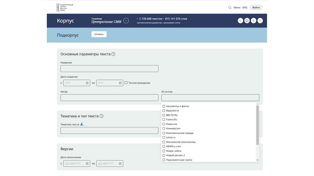 1. С главной стр. НКРЯ перейти на стр. Газетный корпус (корпус современныхСМИ)