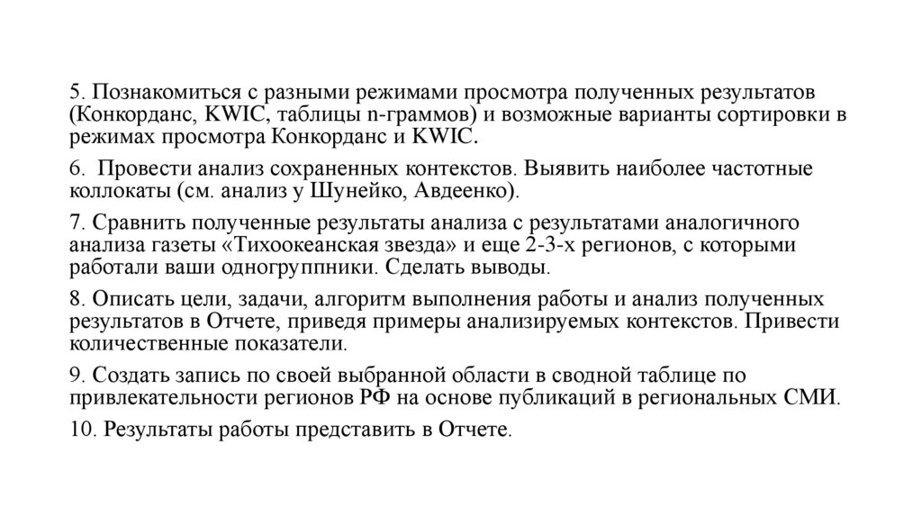 результатов в Отчете, приведя примеры анализируемых контекстов. Привести