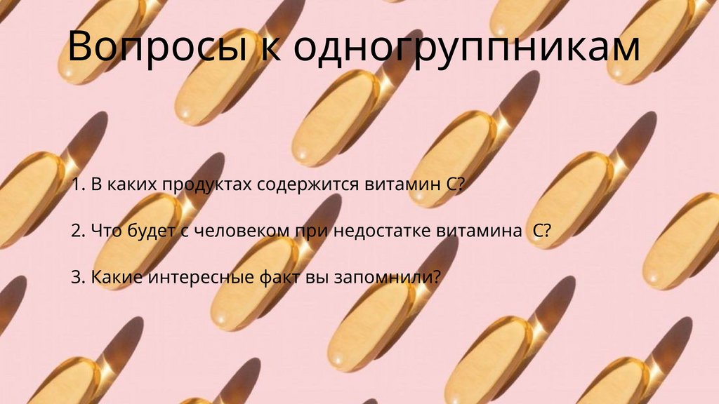 Вопросы к одногруппникам1. В каких продуктах содержится витамин C?