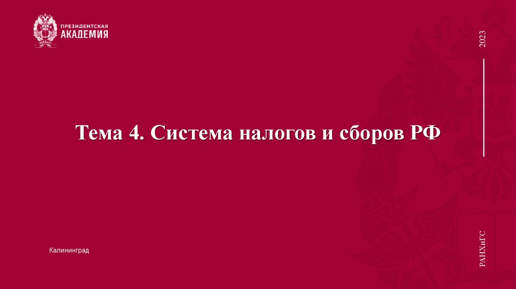 1. Тема 4. Система налогов и сборов РФ