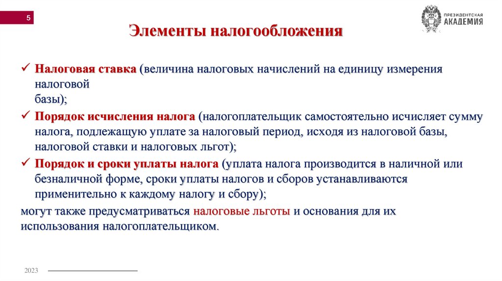 5Элементы налогообложения