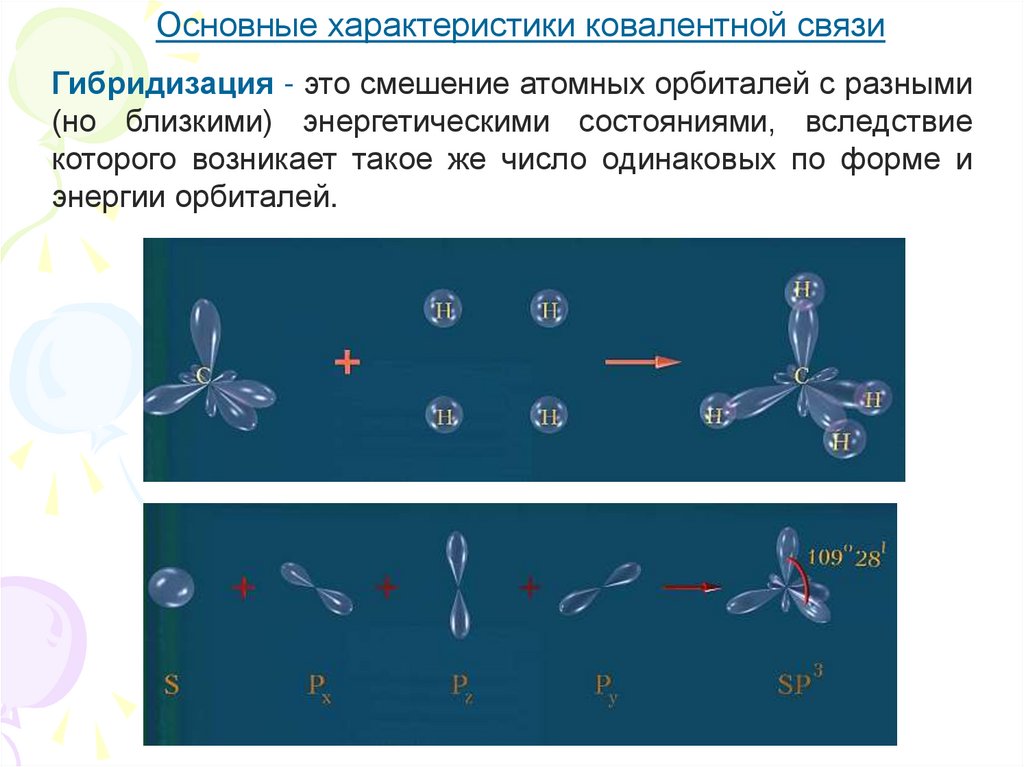Основные характеристики ковалентной связиГибридизация - это смешение атомных орбиталей с разными