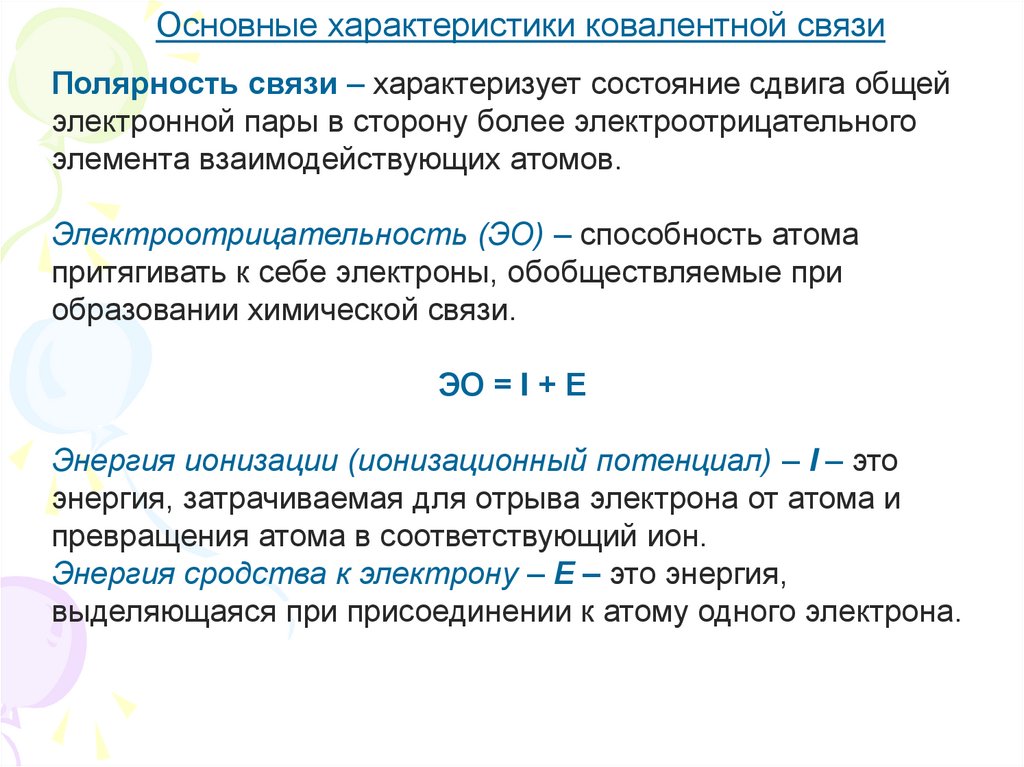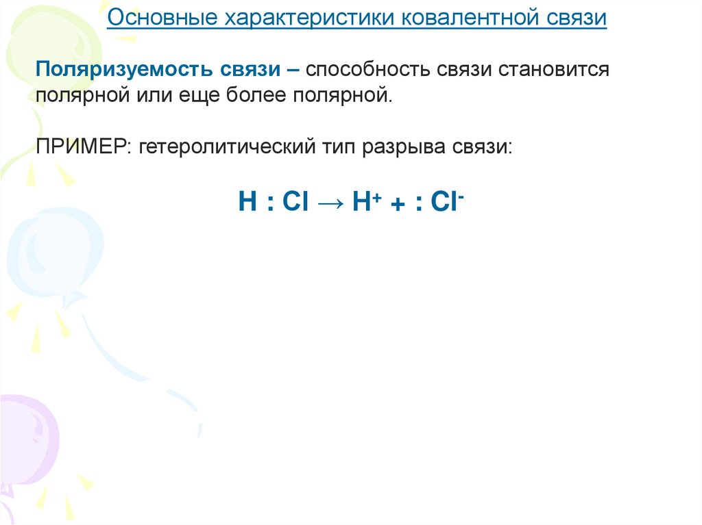 Основные характеристики ковалентной связиПолярность связи – характеризует состояние сдвига общей