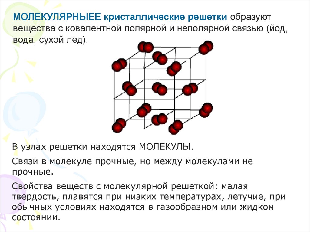 В узлах решетки находятся МОЛЕКУЛЫ.