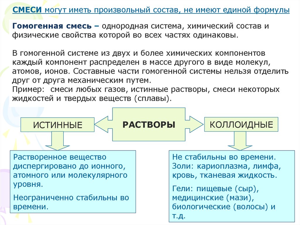 Пример: смеси любых газов, истинные растворы, смеси некоторых