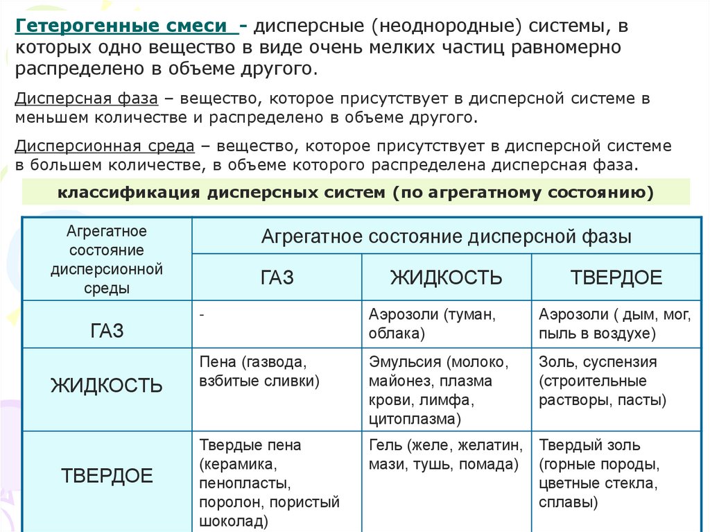 Гетерогенные смеси - дисперсные (неоднородные) системы, вкоторых одно вещество в виде очень мелких частиц равномерно