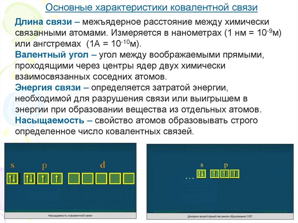 Основные характеристики ковалентной связиНаправленность связи – свойство связи, определяющее