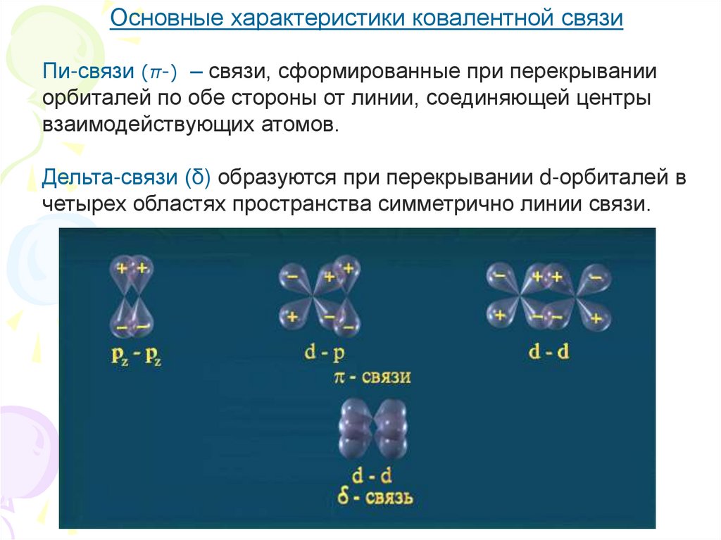 Основные характеристики ковалентной связиПи-связи (π-) – связи, сформированные при перекрывании