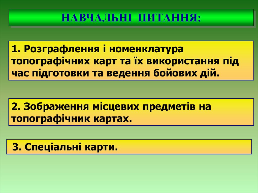 НАВЧАЛЬНІ ПИТАННЯ:1. Розграфлення і номенклатура