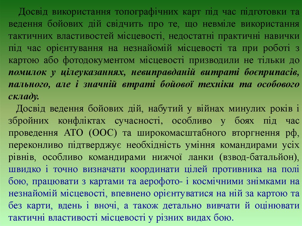 вивченні противника і місцевості.