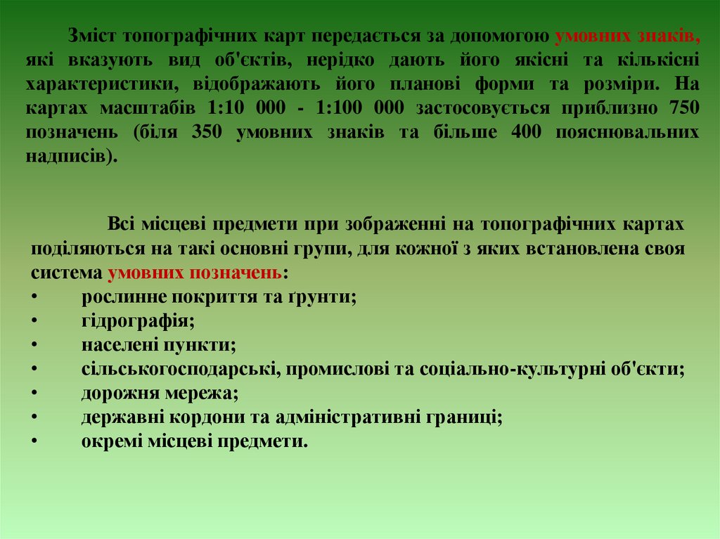 докладністю зображуються окремі елементи місцевості або наносяться