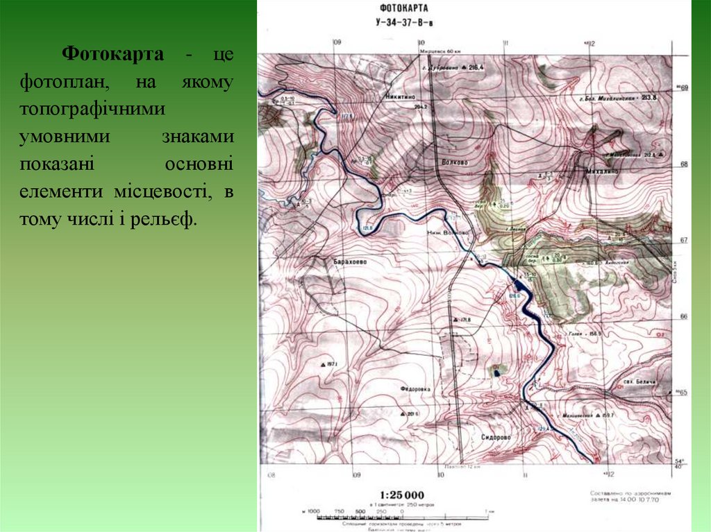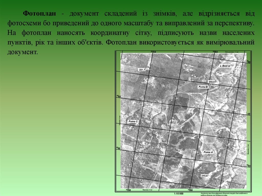 пунктів, рік та інших об'єктів. Фотоплан використовується як вимірювальний