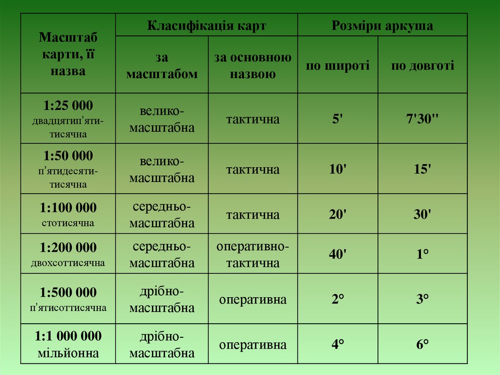 прийнятою для топографічних карт масштабів 1:25 000 - 1:1 000 000.