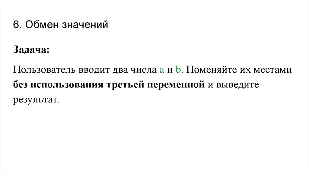 Пользователь вводит два числа a и b. Поменяйте их местами