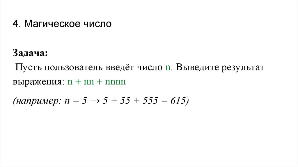 (например: n = 5 → 5 + 55 + 555 = 615)