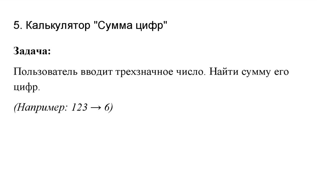 5. Калькулятор "Сумма цифр". [Решение]12.