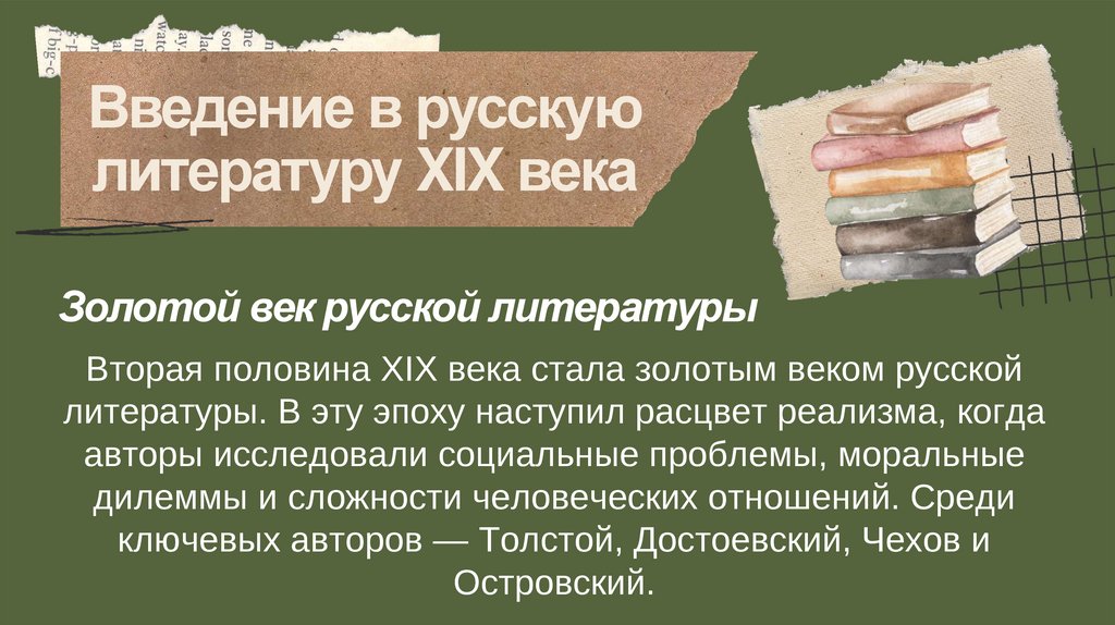 ключевых авторов — Толстой, Достоевский, Чехов и