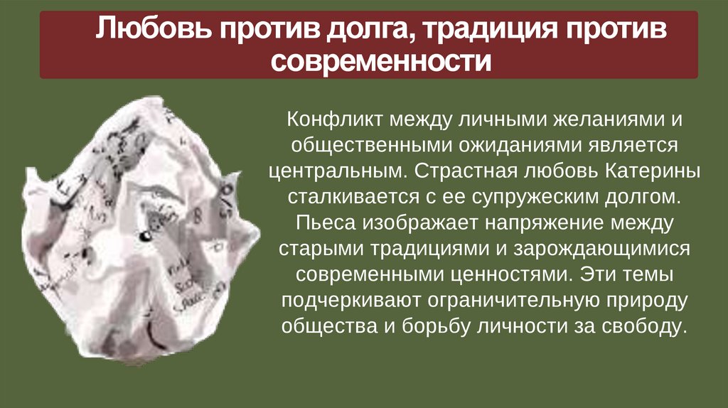 Любовь против долга, традиция противсовременности