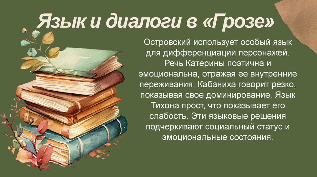 Язык и диалоги в «Грозе»Островский использует особый язык